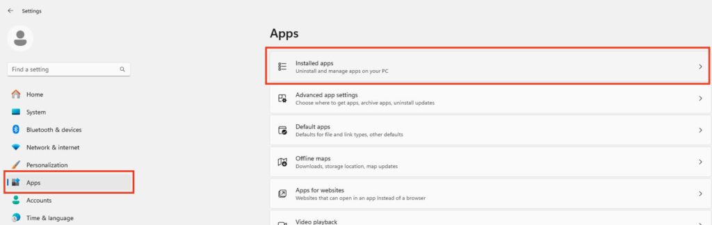 1. Go to «Settings» => «Apps» => «Installed Apps».