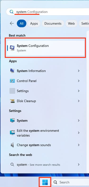 1. Type «System Configuration» in the search.