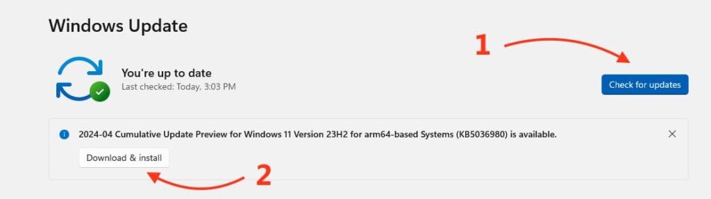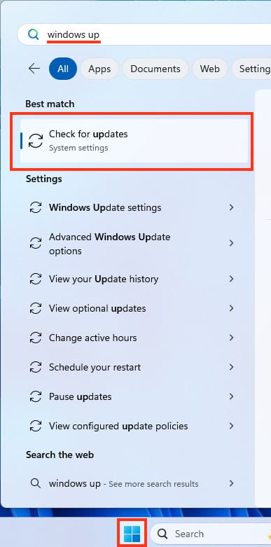 3. After that, go back to the search and type «Check for updates».