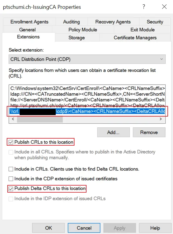 — Настройка путей AIA (Authority Information Access) и CDP (CRL Distribution Point), где клиенты смогут получить сертификаты CA и списки отзыва.