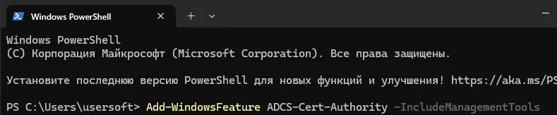 Если нужно установить AD CS и CA из консоли, можно использовать PowerShell: