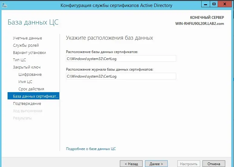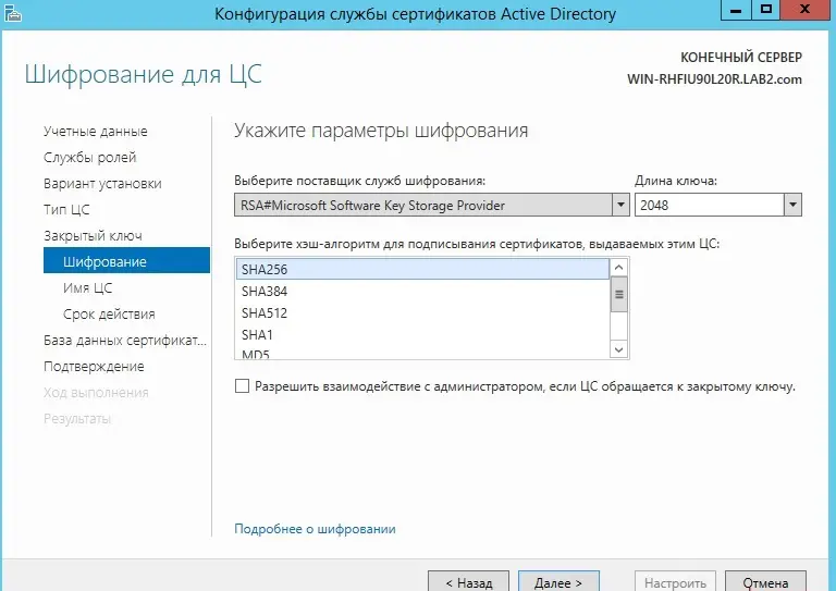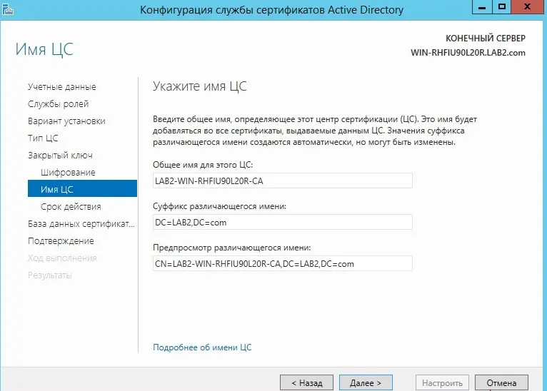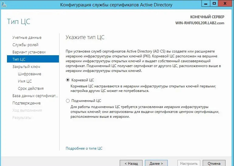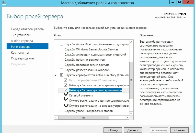 Установка и настройка AD CS