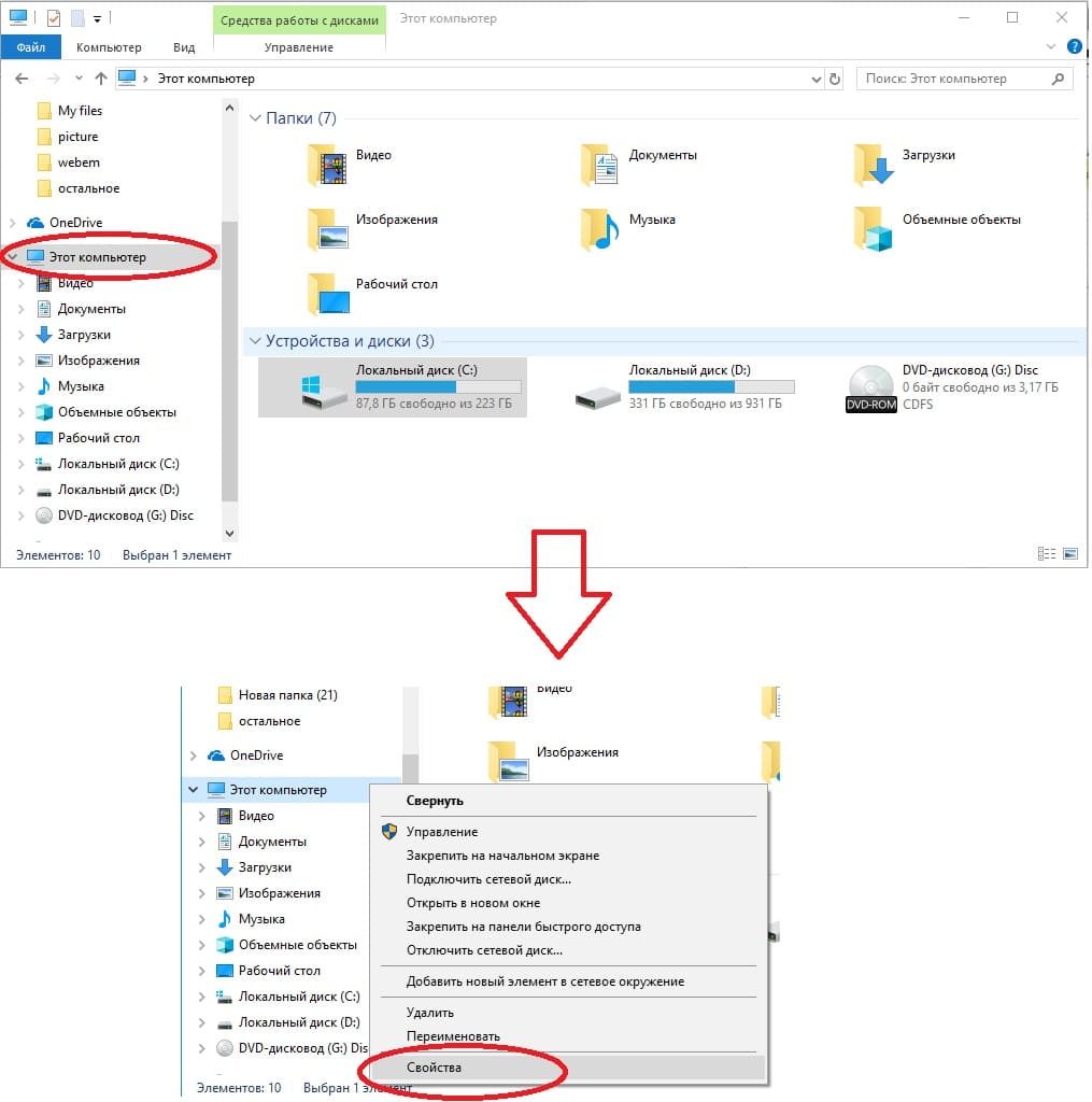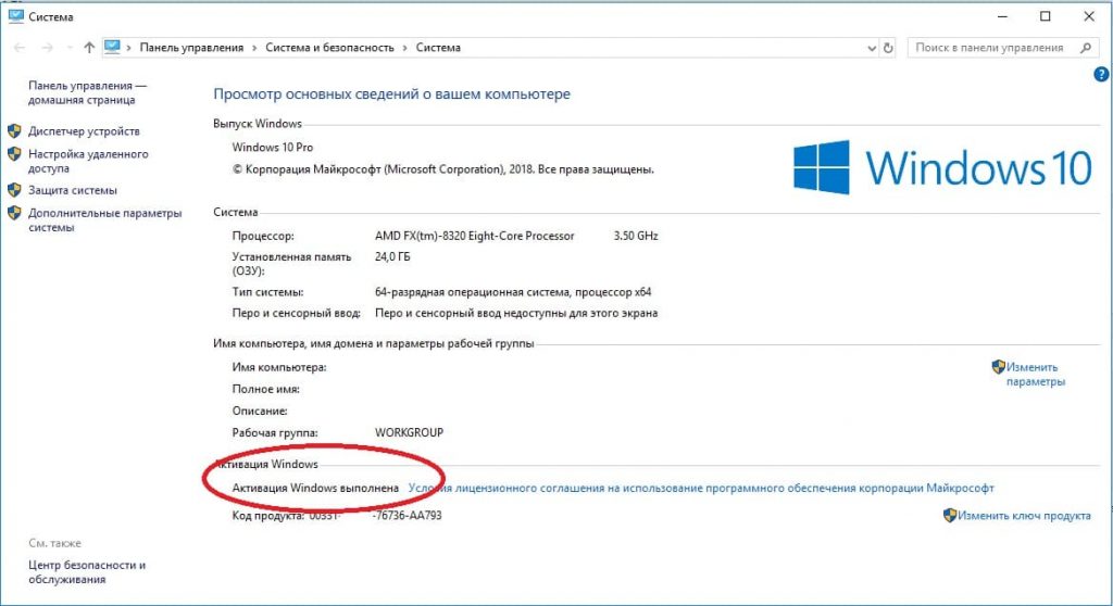 1) Убедитесь, что у Вас активированная операционная система. Для этого заходим в проводник (в любую папку), слева «Этот компьютер» => правой кнопкой мыши => свойства.