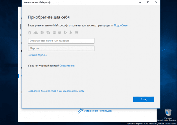 Если нет, то из меню «Параметры» => Учетная запись, нужно будет добавить учетную запись Майкрософт.