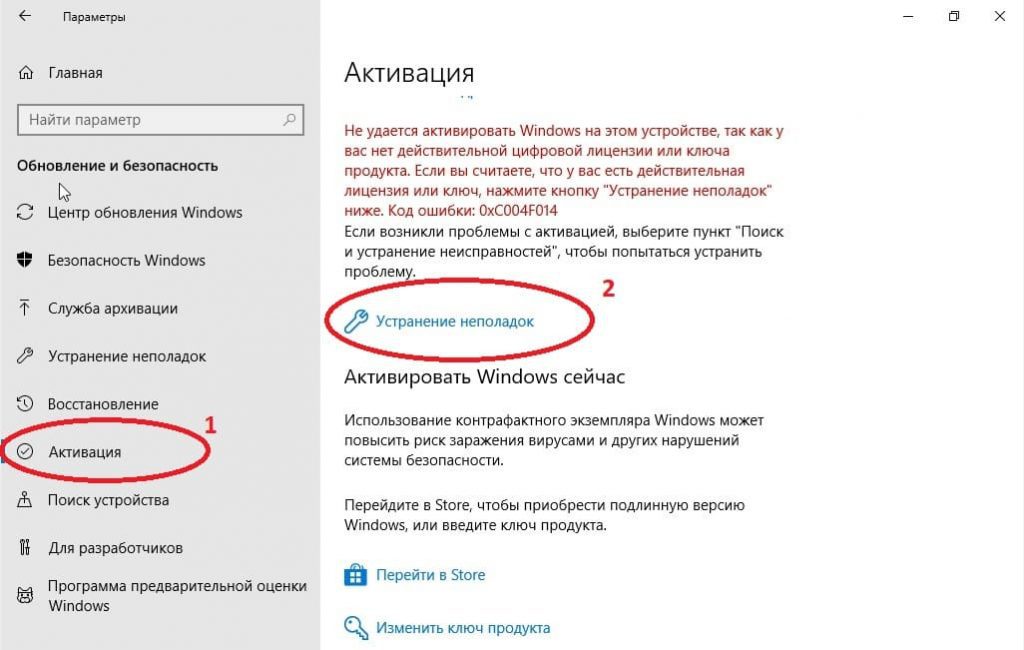 4) Нужно зайти в меню «Пуск» => Параметры => Обновление и безопасность => Активация => Устранение неполадок