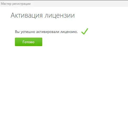 Появится окно с успешной активацией лицензии, а затем — окно с успешной установкой продукта, везде нажмите «Готово».