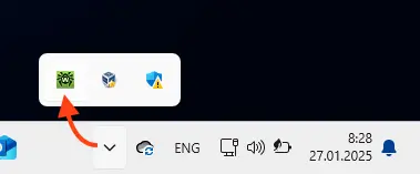 — Перейдите в нижний правый угол Windows и откройте трей, нажмите два раза на значок антивируса Dr.Web.