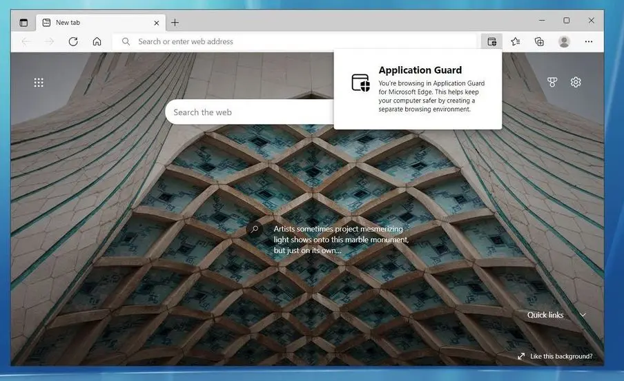 В адресной строке появится пометка [Application Guard], а сам браузер будет работать в изолированной среде.