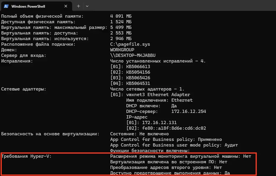 Проверить наличие Hyper-V можно через PowerShell: