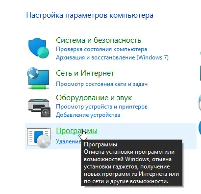 1. Откройте Панель управления → Программы → Включение или отключение компонентов Windows.