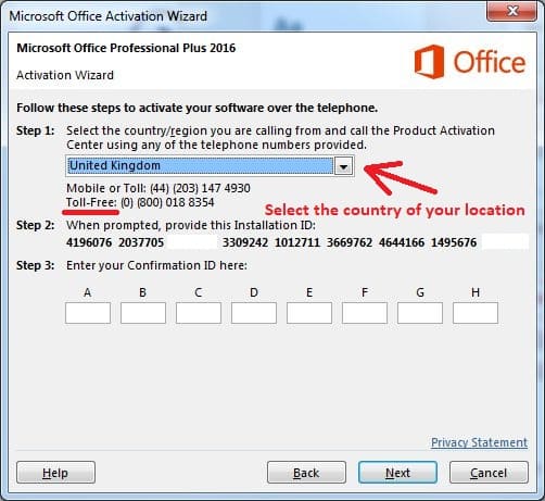 How to activate Microsoft Office 2016 Pro Plus by phone?