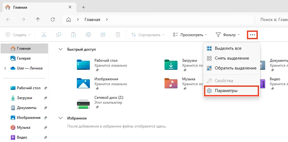 2. Перейдите в Просмотр → Параметры → Изменить параметры папок и поиска (View → Options).