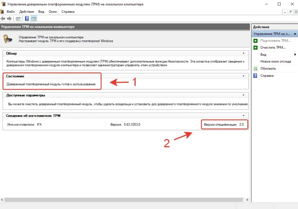 Если в поле TPM Present отображается True — устройство готово.