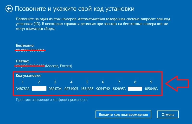 6) Далее у Вас появится непосредственно само окно активации по телефону. Внимание! Российские номера телефонов, которые указаны в окне активации по телефону – сейчас не работают.