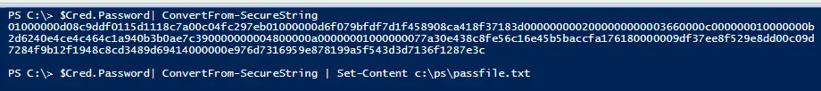 "Пароль123" | ConvertTo-SecureString -AsPlainText -Force | ConvertFrom-SecureString | Out-File "C:\secure.txt"