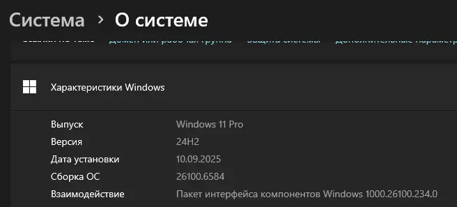 1. – Откройте «Параметры → Система → О системе» и убедитесь, что ваша версия Windows 11 — 22H2 или выше.