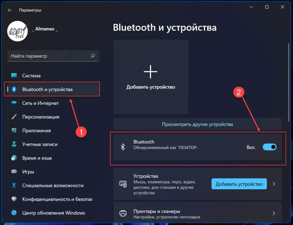 1. – Включите Bluetooth на ПК (Параметры → Bluetooth & устройства).