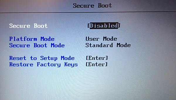 – Состояние Secure Boot — отключите, если включено, и проверьте снова.