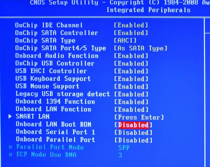 – Проверьте раздел Power или Advanced и отключите Wake on LAN, если она активна.