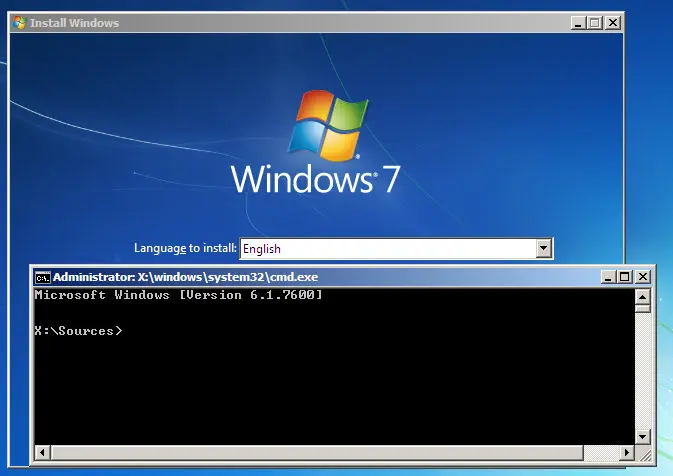 – Или используйте среду WinPE для запуска команды. Загрузитесь с диска или флэшки и в первом же окне нажмите сочетание клавиш SHIFT+F10.