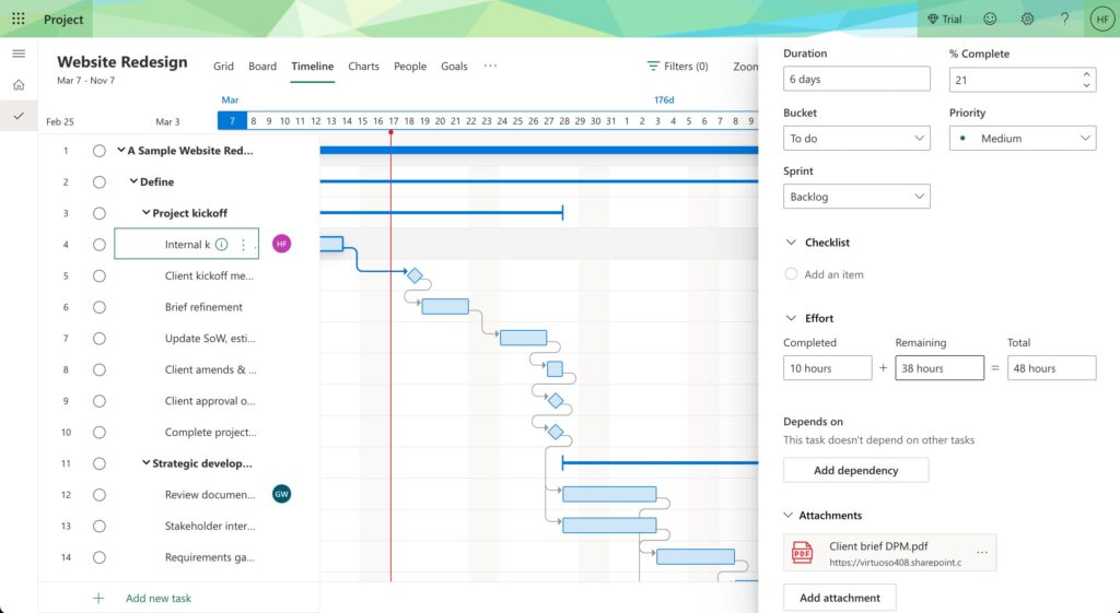 Гибридные методологии: В новой версии Project можно объединять элементы различных методологий. Например, можно использовать диаграмму Ганта для планирования длительных этапов проекта, а Kanban-доски — для ежедневного отслеживания задач.