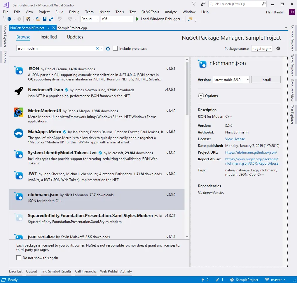 Допустим, вам нужно подключить библиотеку nlohmann-json: