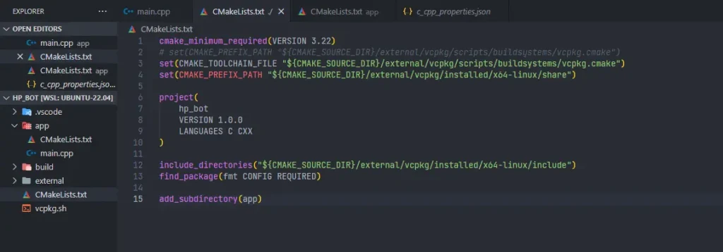 – Разработчики могут хранить файл CMakeLists.txt и список пакетов vcpkg в репозитории.
