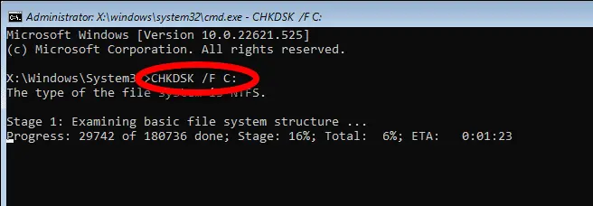 chkdsk C: /f /r