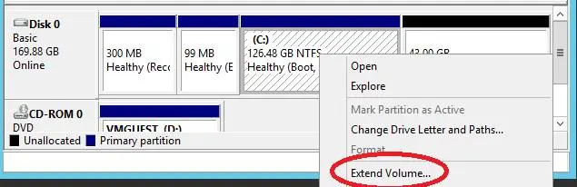 3. Щелкните правой кнопкой мыши по разделу слева от неразмеченной области и выберите Расширить том.