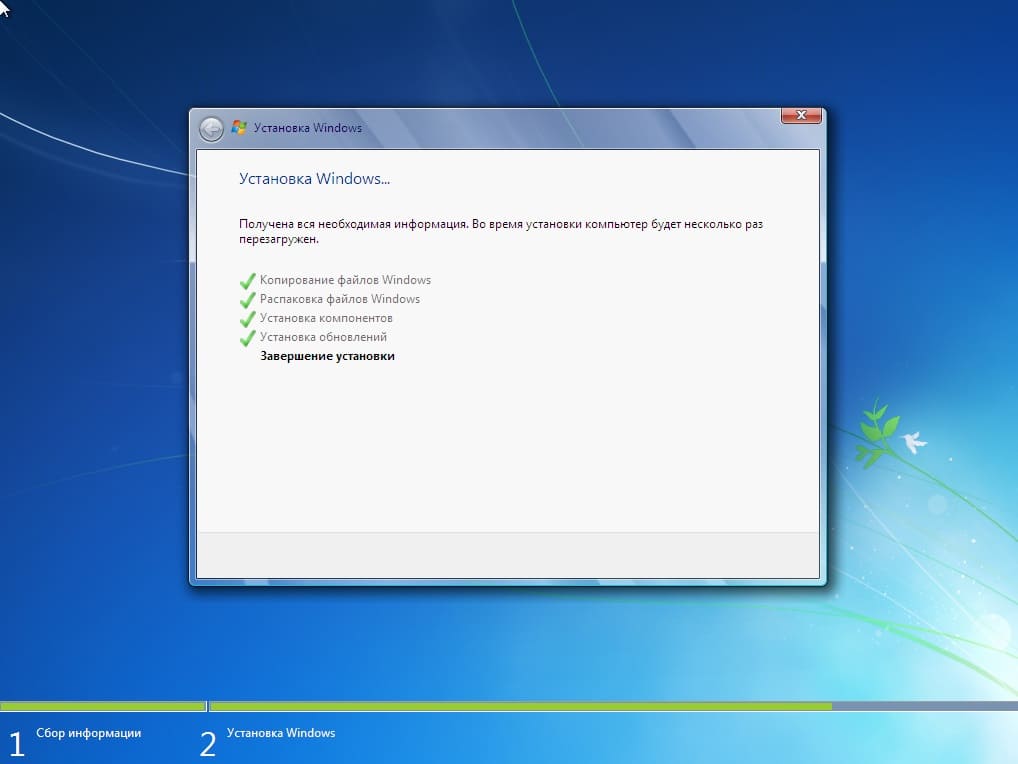 Далее начнется сама установка, до полного обновления системы компьютер перезагрузится примерно 3 раза. Вам ничего не нужно будет нажимать до окна с выбором языка.