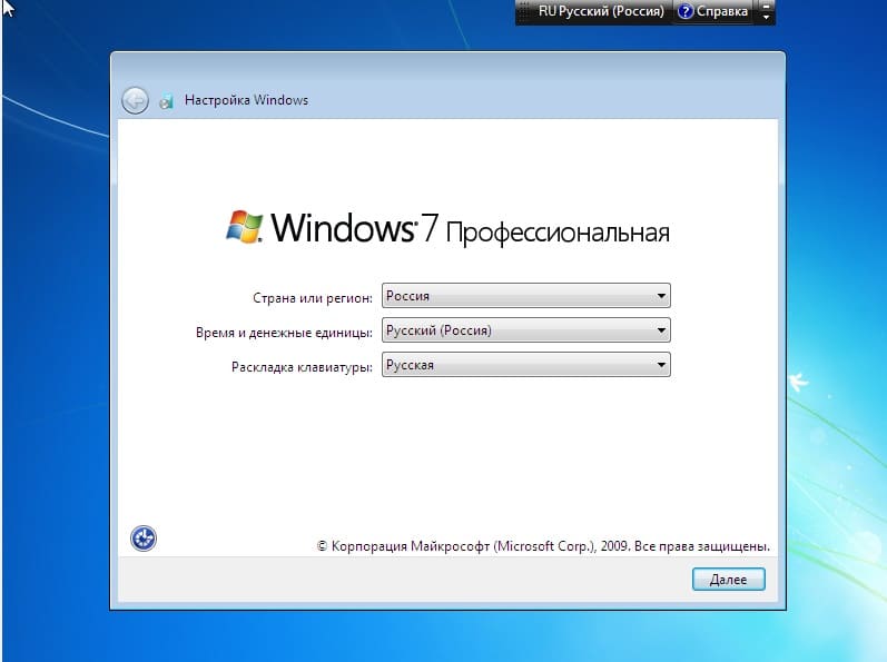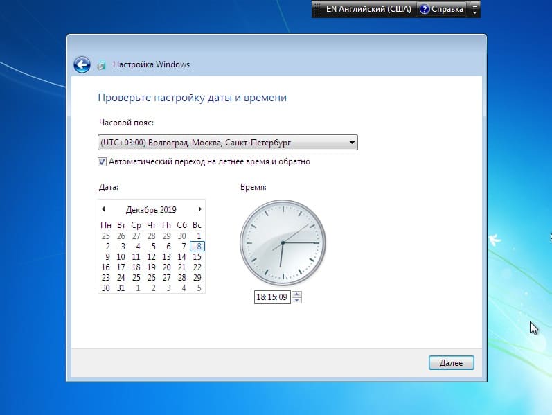 Теперь уже потребуется Ваше участие, нужно выбрать требуемый язык системы и раскладки.