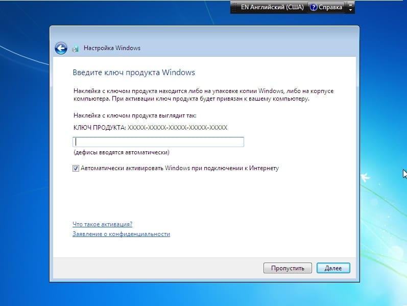 Если же Вы планируете далее обновляться до Windows 10, используя Windows 7 просто как “буферную систему”, то можете нажать на кнопку “Пропустить”.