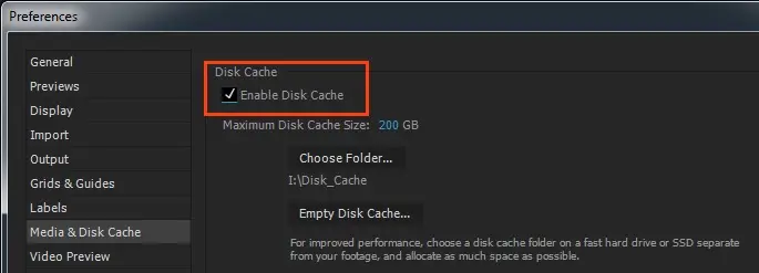 Способ 3: Очистка кэша After Effects (Disk Cache)