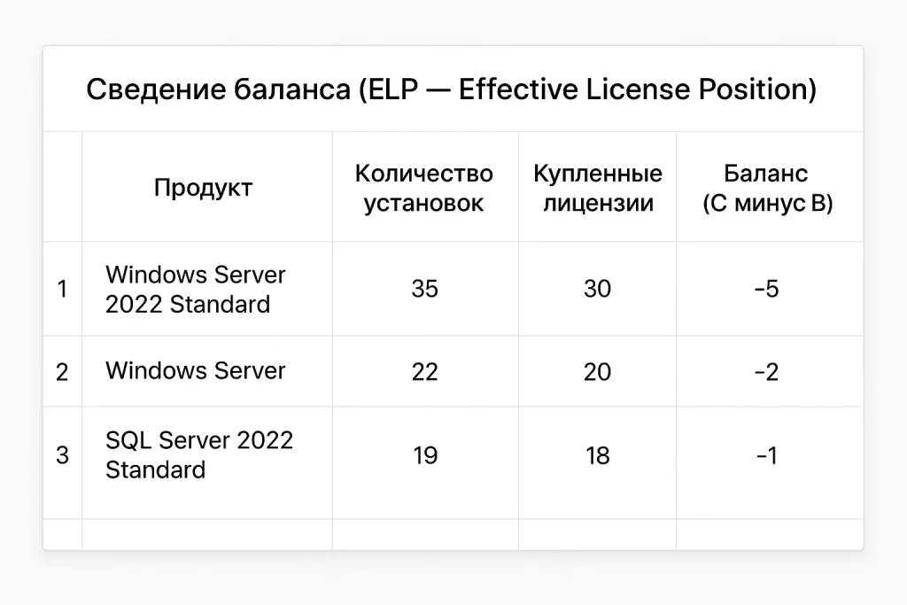 Этап 3: Сведение баланса (ELP — Effective License Position)