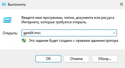 1. Откройте консоль, выполнив команду gpedit.msc через меню «Выполнить» (Win + R).