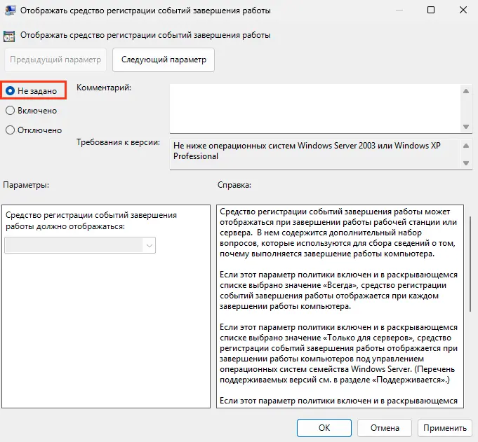 4. Для каждой активной политики установите значение Не задано.