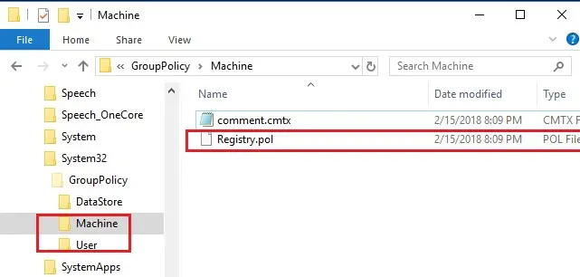 – Machine\Registry.pol — настройки конфигурации компьютера (импортируются в ветку реестра HKEY_LOCAL_MACHINE при загрузке).