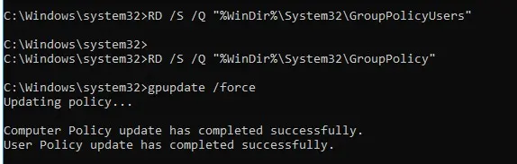 rd /S /Q C:\Windows\System32\GroupPolicy