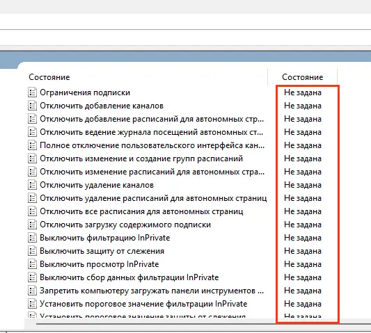4. Проверьте консоль gpedit.msc — все параметры должны быть в состоянии Не задано.