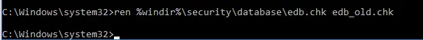 ren %windir%\security\database\edb.chk edb_old.chk