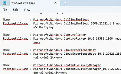 Get-AppxPackage -AllUsers | Format-List -Property Name, PackageFullName > C:\ps\windows_uwp_apps.txt
