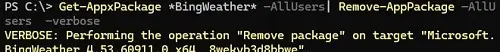 Get-AppxPackage *BingWeather* -AllUsers | Remove-AppxPackage -AllUsers -Verbose