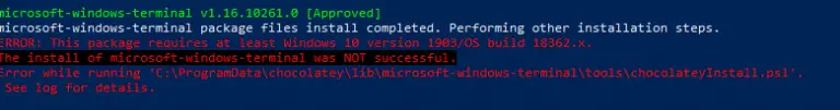 ERROR: This package requires at least Windows 10 version 1903/OS build 18362.x.