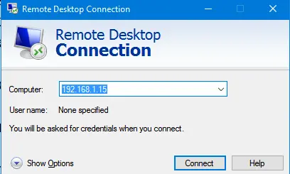 1. Запустите mstsc.exe через меню «Выполнить» (Win + R).