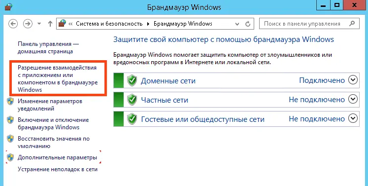 1. Откройте Панель управления -> Брандмауэр Защитника Windows -> Разрешение взаимодействия с приложением или компонентом.
