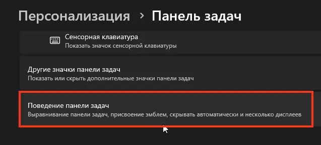3. Внизу найдите подраздел Поведение панели задач (Taskbar behaviours).