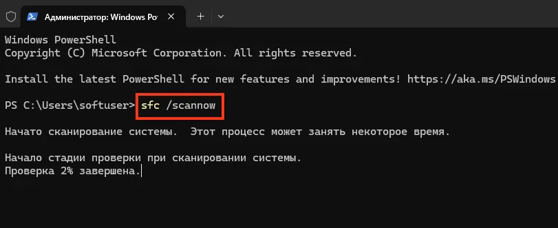 SFC (System File Checker) — это встроенная утилита, которая проверяет системные файлы на целостность и при необходимости заменяет их корректными версиями из кэша.