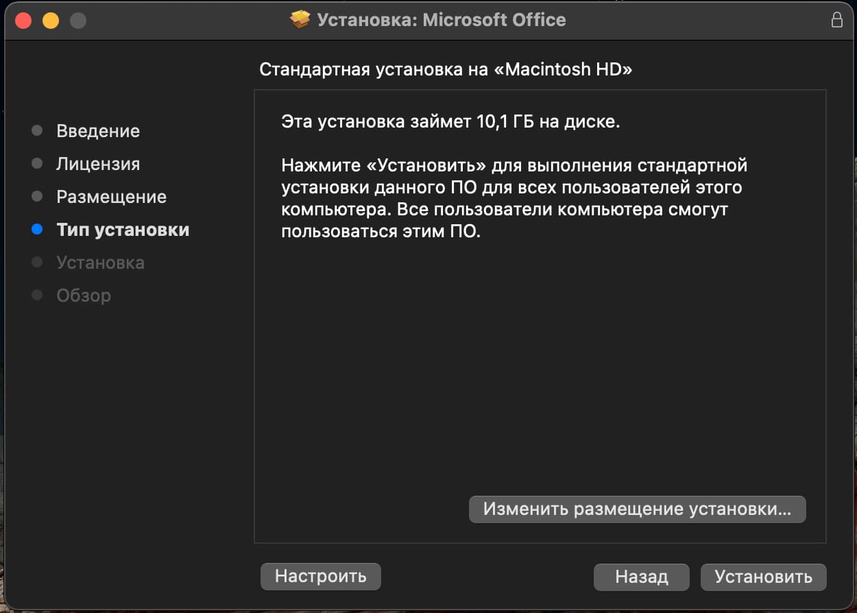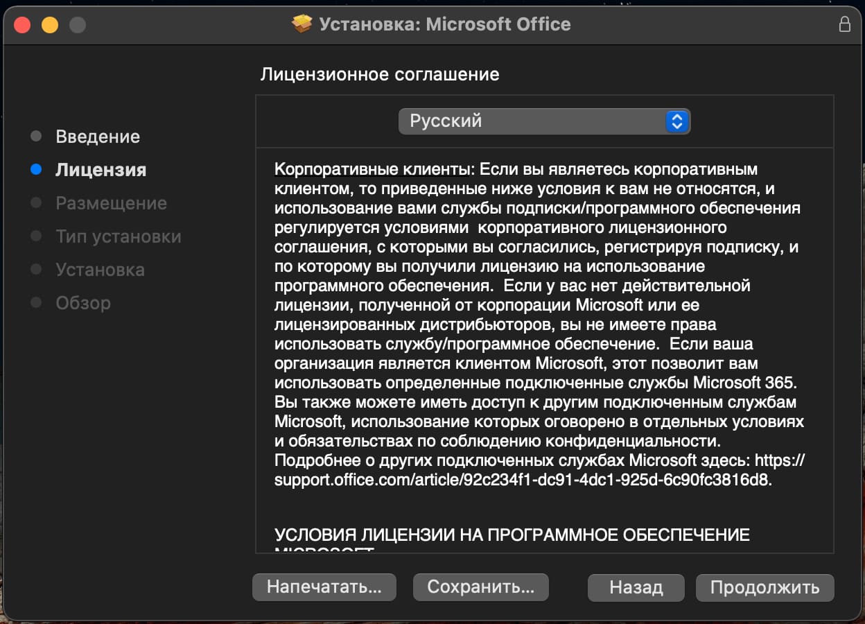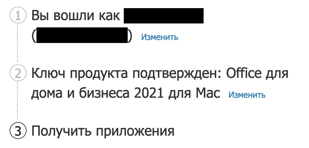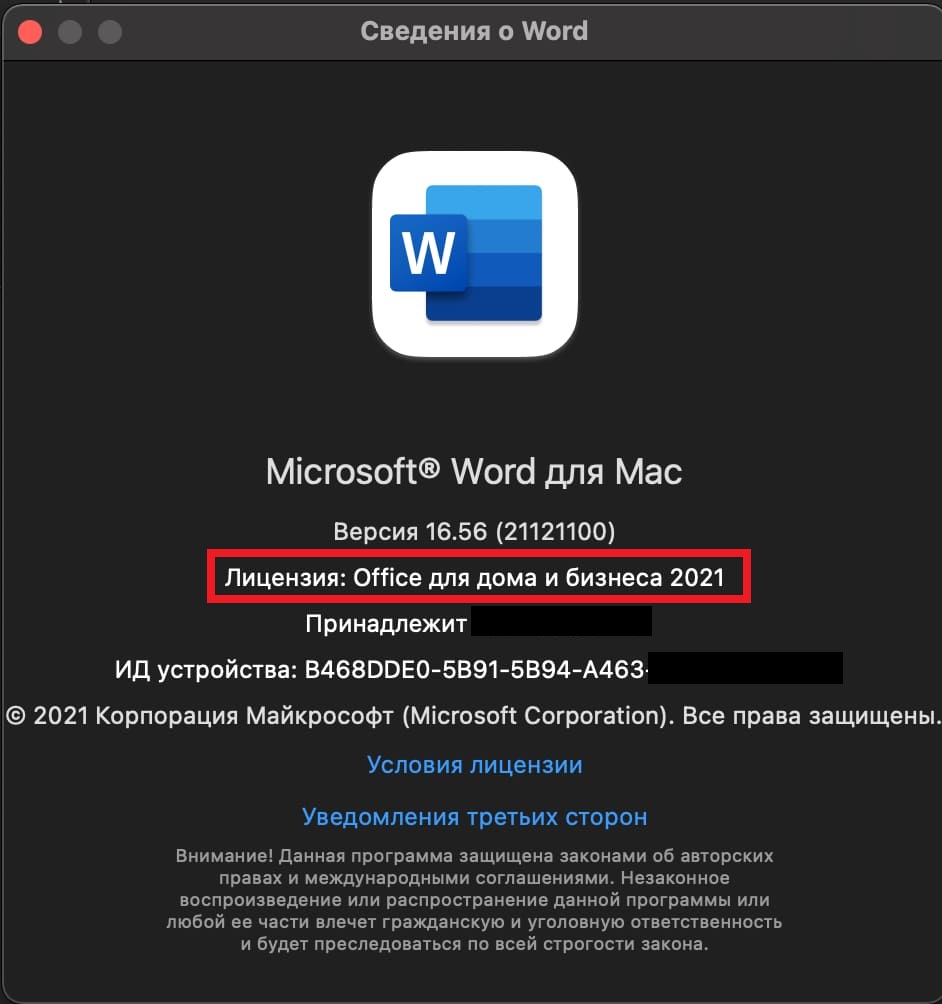 4) Теперь можем видеть, что лицензия автоматически определилась, как “Office для дома и бизнеса 2021 для Mac“.