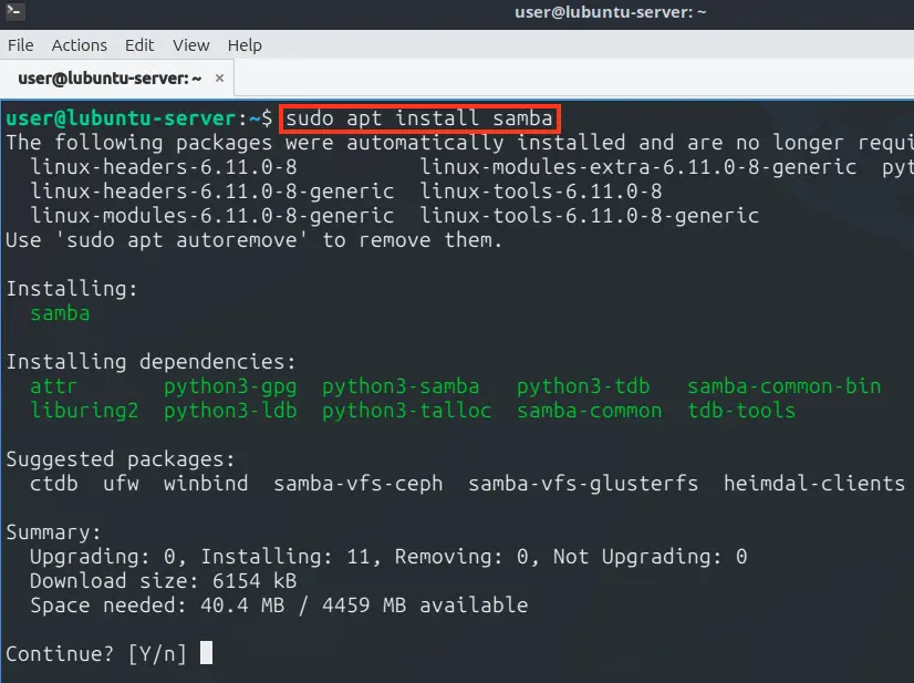 sudo apt install samba
