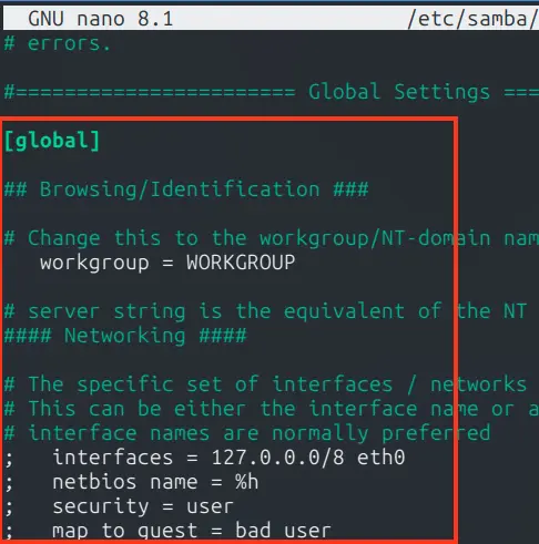 sudo nano /etc/samba/smb.conf